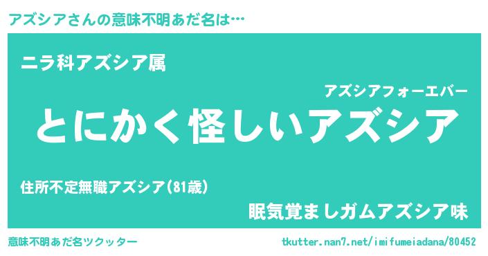 | 胡散臭い通販商品みたいなあだ名 | 『伝統あるサプリメント…その名も「アズシア」』 |