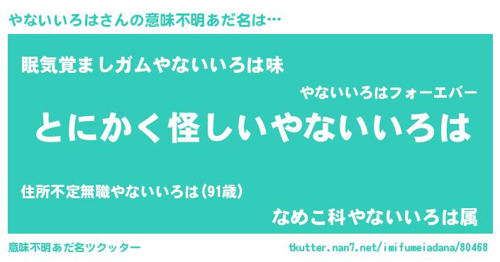 | 男性向けラノベタイトル風あだ名 | 『ダンジョンにやないいろはを求めるのは間違っているだろうか』 |