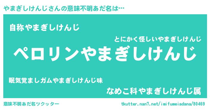 | 胡散臭い通販商品みたいなあだ名 | 『億万長者になれるブレスレット…その名も「やまぎしけんじ」』 |