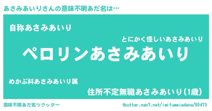 | 男性向けラノベタイトル風あだ名 | 『はたらくあさみあいりさま!』 |