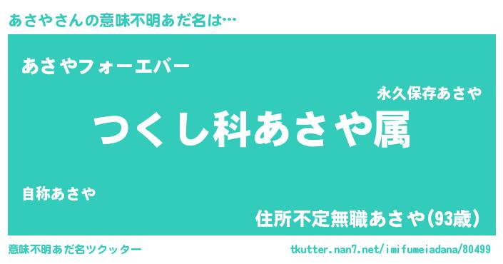 | ヘコむあだ名 | 『酢こんぶ』『あさや(苦笑)』 |