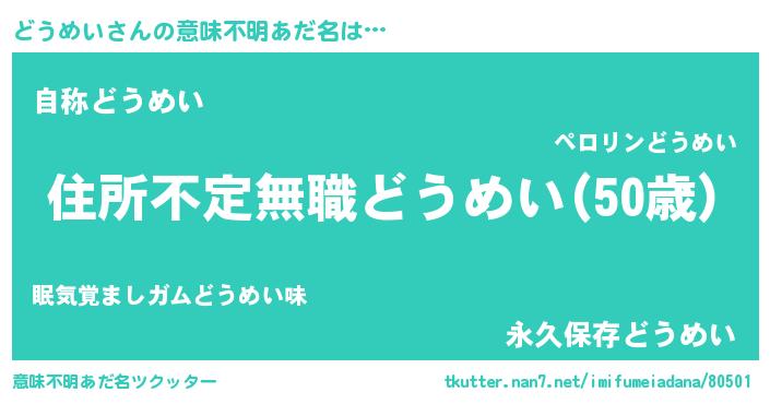 | ヘコむあだ名 | 『どうめい(笑)』『どうにゅー』 |
