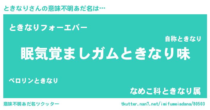 | 料理風あだ名 | 『ときなりのトマト煮』『ときなりごはん』 |