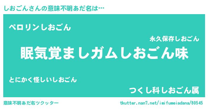 | 男性向けラノベタイトル風あだ名 | 『ノーゲーム・ノーシオゴン』 |