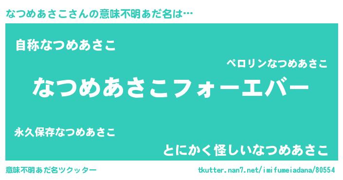 | ファンタジー風あだ名 | 『エターナルナツメアサコー』 |