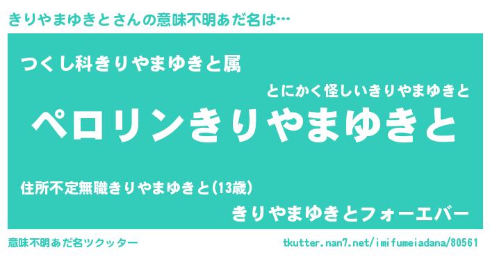 | 胡散臭い通販商品みたいなあだ名 | 『億万長者になれるブレスレット…その名も「きりやまゆきと」』 |