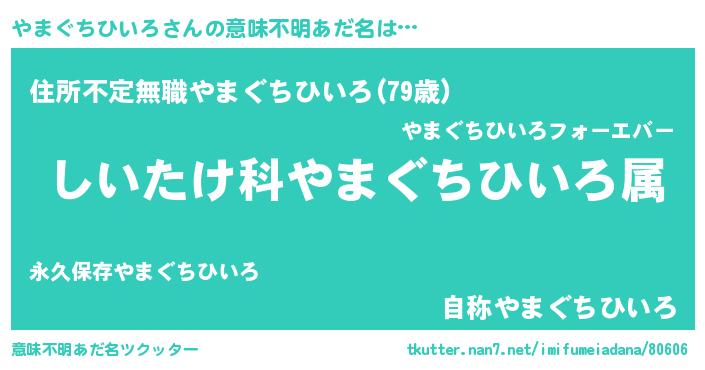 | 料理風あだ名 | 『やまぐちひいろごはん』 |