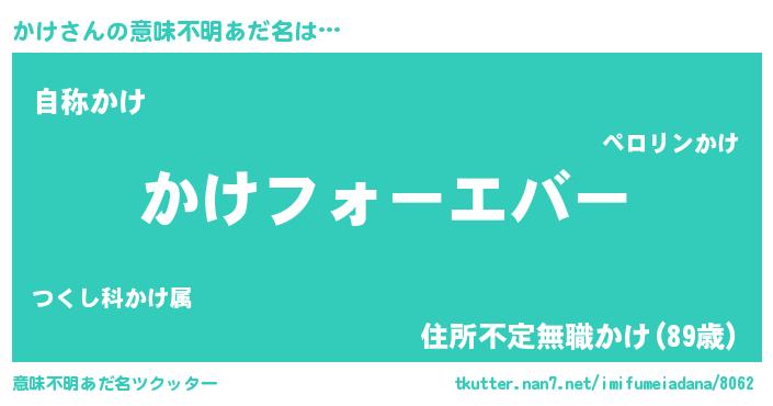 | ヒーロー風カッコイイあだ名 | 『ウルトラかけマン』『最強戦士カケ』 |