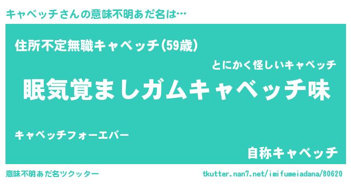 | 男性向けラノベタイトル風あだ名 | 『おまえをオタクにしてやるから、俺をキャベッチにしてくれ! 』 |