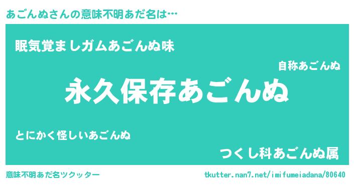 | ヘコむあだ名 | 『あごんぬ(遠い目)』『あごを』 |