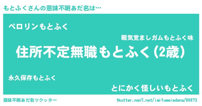 | 男性向けラノベタイトル風あだ名 | 『魔弾の王ともとふく』 |