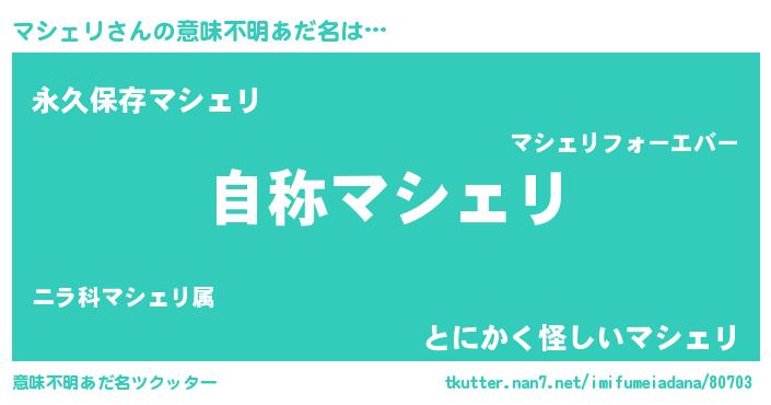 | ヘコむあだ名 | 『マシェリ(笑)』『マシぷりん』 |