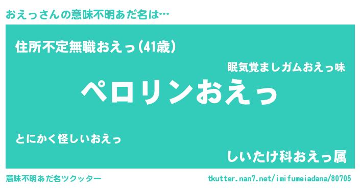 | 胡散臭い通販商品みたいなあだ名 | 『必ず成功するブレスレット…その名も「おえっ」』 |