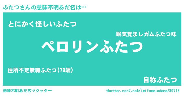 | ヒーロー風カッコイイあだ名 | 『スーパーフタツ』『黄金騎士フタ』 |