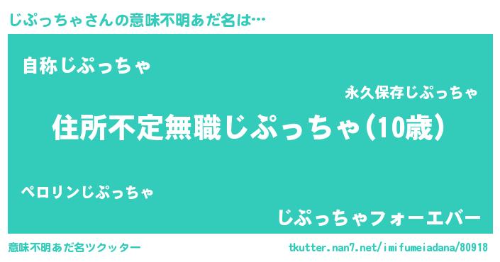 | 女子向けラノベタイトル風あだ名 | 『悪役じぷっちゃに転生したようですが、知った事ではありません』 |