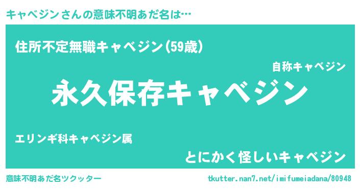 | 伝説のあだ名 | 『古より伝わる吟遊詩人キャベジン』 |