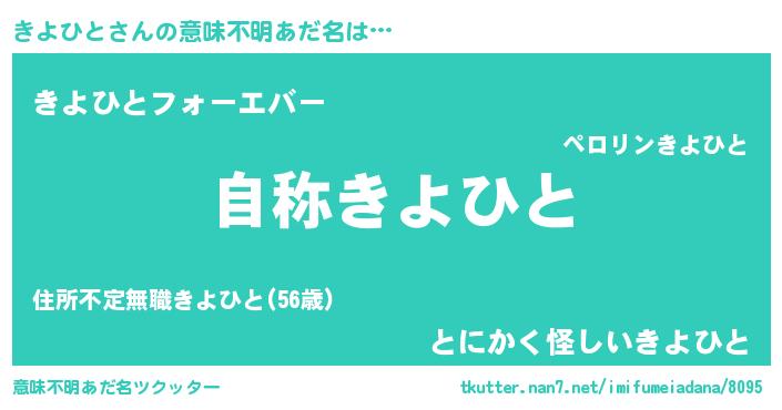 | 女子向けラノベタイトル風あだ名 | 『きよひとなんてお断りですっ。』 |