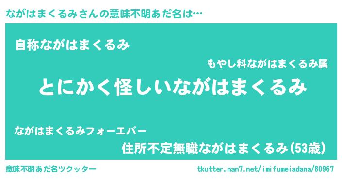 | 女子向けラノベタイトル風あだ名 | 『ながはまくるみ様がみてる』 |