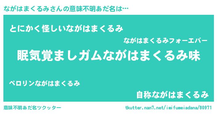 | 女子向けラノベタイトル風あだ名 | 『ながはまくるみ恋絵巻』 |