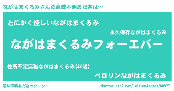 | 欧米人風あだ名 | 『ながはまくるみクリステル』 |