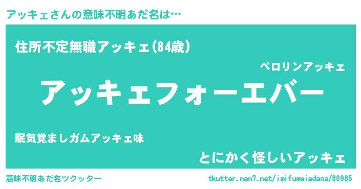 | ファンタジー風あだ名 | 『エターナルアッキェー』『アッフェル』 |