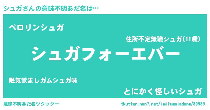 | 男性向けラノベタイトル風あだ名 | 『うちのシュガが世界を掌握している!』 |