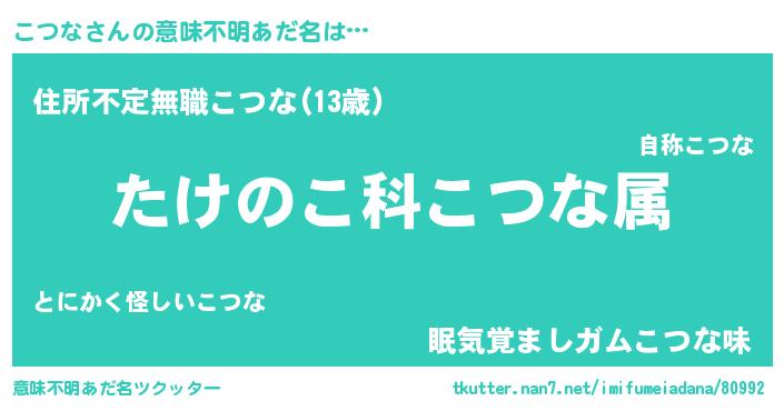 | 料理風あだ名 | 『こつなごはん』 |
