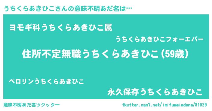| 男性向けラノベタイトル風あだ名 | 『この素晴らしい世界にうちくらあきひこを!』 |