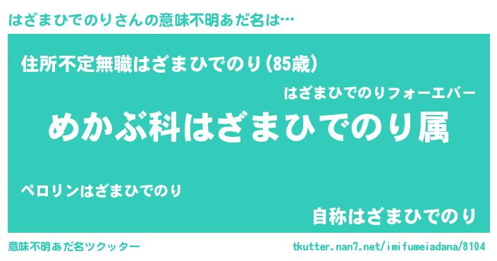 | 料理風あだ名 | 『はざまひでのりごはん』 |