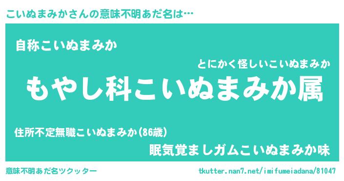 | 欧米人風あだ名 | 『トリンドルこいぬまみか』 |