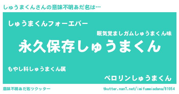 | 胡散臭い通販商品みたいなあだ名 | 『来世でも幸せになれる水素水…その名も「しゅうまくん」』 |