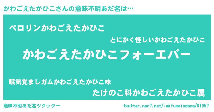 | 欧米人風あだ名 | 『かわごえたかひこ・ステッグマイヤー』 |