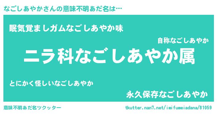 | 肩書あだ名 | 『なごしあやか上級大将』 |