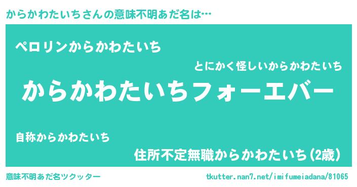 | 胡散臭い通販商品みたいなあだ名 | 『幸せが訪れる高級そうな壺…その名も「からかわたいち」』 |