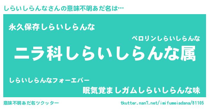 | 胡散臭い通販商品みたいなあだ名 | 『前代未聞の健康食品…その名も「しらいしらんな」』 |