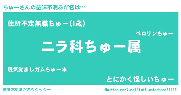 | ヘコむあだ名 | 『ちゅぷりん』『ちゅにー』『豆乳』 |