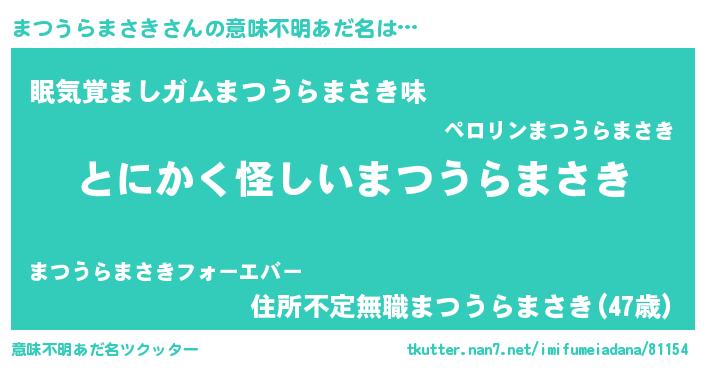 | 男性向けラノベタイトル風あだ名 | 『うちのまつうらまさきが世界を掌握している!』 |