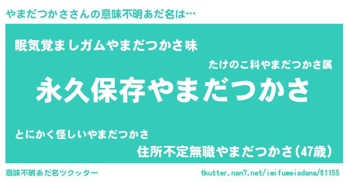 | 胡散臭い通販商品みたいなあだ名 | 『絶対に幸福をもたらす健康食品…その名も「やまだつかさ」』 |