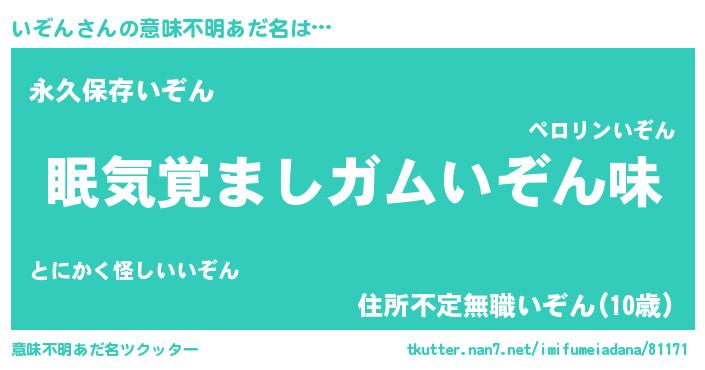 | ヒーロー風カッコイイあだ名 | 『正義の使者いぞん』『ネオイゾン』 |