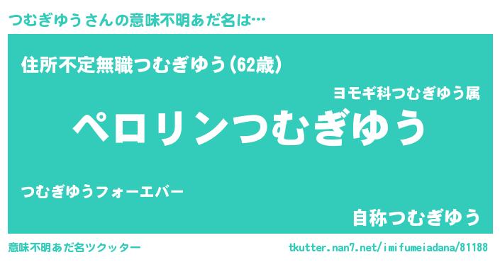 | 男性向けラノベタイトル風あだ名 | 『つむぎゆうの憂鬱』 |