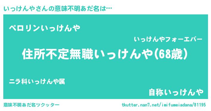 | 男性向けラノベタイトル風あだ名 | 『魔弾の王といっけんや』 |