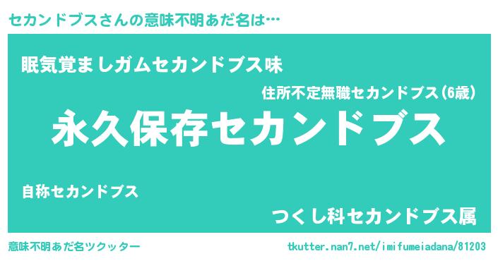 | ヘコむあだ名 | 『セカンドブス(遠い目)』『セカにゅー』 |