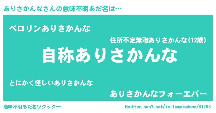 | ヒーロー風カッコイイあだ名 | 『ウルトラ戦士アリサカンナ』 |