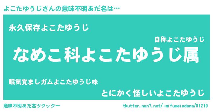 | 男性向けラノベタイトル風あだ名 | 『転生したらよこたゆうじだった件』 |