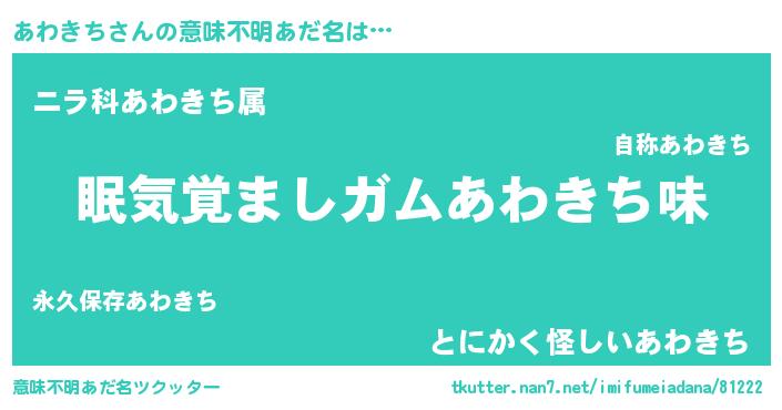 | ヒーロー風カッコイイあだ名 | 『慈愛の使者あわきち』『魔戒騎士アワ』 |