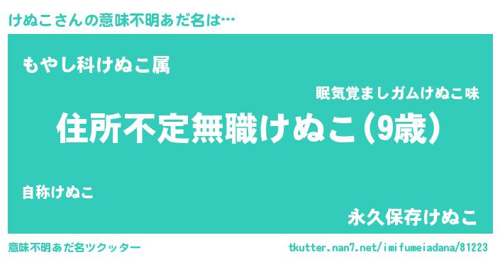 | 料理風あだ名 | 『けぬこのカルパッチョ風』 |