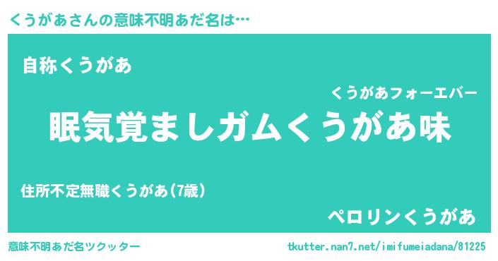 | 女子向けラノベタイトル風あだ名 | 『くうがあ恋絵巻』『くうがあ伯爵の花嫁』 |