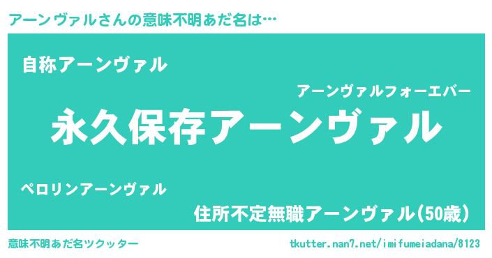 | 胡散臭い通販商品みたいなあだ名 | 『来世でも幸せになれる健康食品…その名も「アーンヴァル」』 |