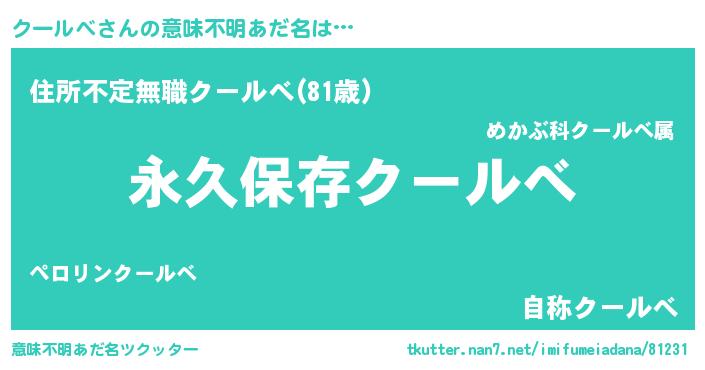 | ヘコむあだ名 | 『クールべ(爆)』『クーにゅー』 |