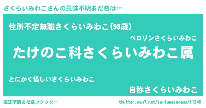 | 胡散臭い通販商品みたいなあだ名 | 『世界中を虜にした100年もののヴィンテージワイン…その名も「さくらいみわこ」』 |